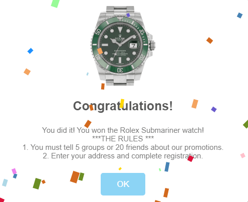So, the giveaway of rolex watches makes no sense.. Currently, this scam is making headways on a couple of social media sites. In today's post, we will check about a link which claims that rolex is giving free gifts on its 100th anniversary. So, the giveaway of rolex watches makes no sense. The very first suspicious point about this viral text message is that the company has celebrated its century 16 years ago. In today's post, we will check about a link which claims that rolex is giving free gifts on its 100th anniversary.